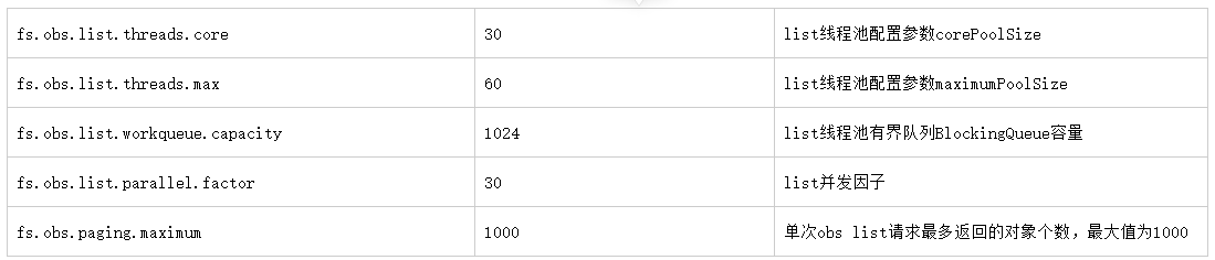 fs.obs.retry.maxtime:默认值180000ms,控制最大重试时间,重试间隔为max(fs.obs.retry.sleep.basetime*2的重试次数次方,fs.obs.retry.sleep.maxtime)