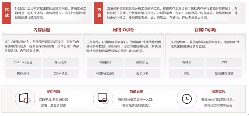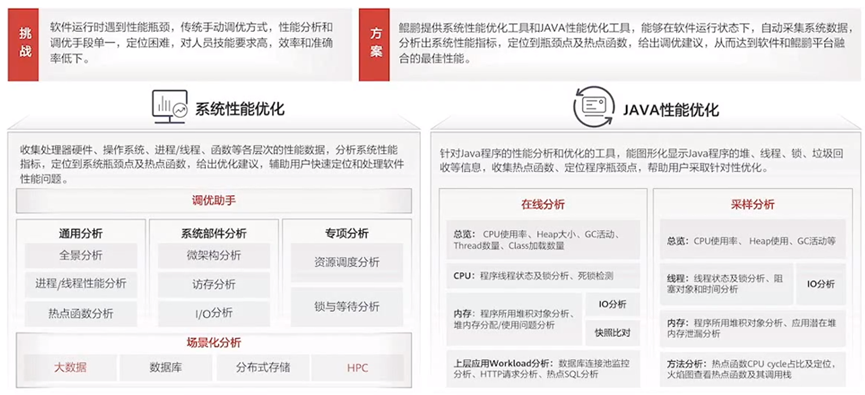鲲鹏性能分析工具是一个工具集,包含工具:调优助手、系统性能分析、Java性能分析和系统诊断。