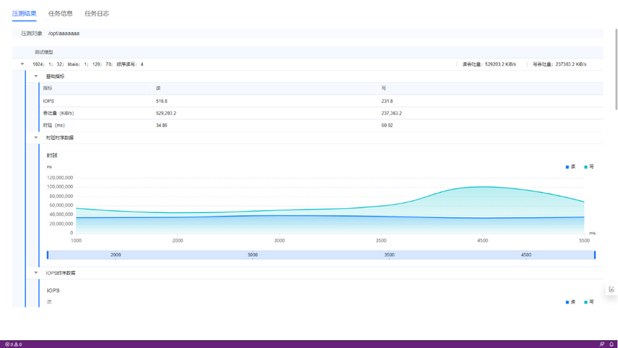 压测存储IO,获得存储设备最大能力,包括:吞吐量、IOPS、时延等,并以此评估存储能力,为存储IO性能优化提供基础参考数据。