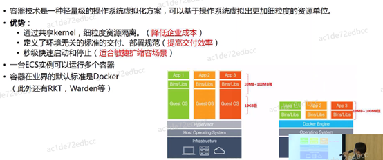 容器技术是一种轻量级的操作系统虚拟化方案,可基于操作系统虚拟出更加细粒度的资源单位。
