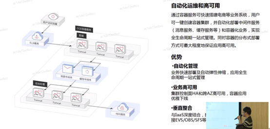 通过容器服务可快速搭建电商等业务系统,用户可一键创建容器集群,并自动化部署中间件服务和容器化业务,实现全生命周期一站式管理。同时容器的分布式部署方式可最大程序地保证应用高可用。
