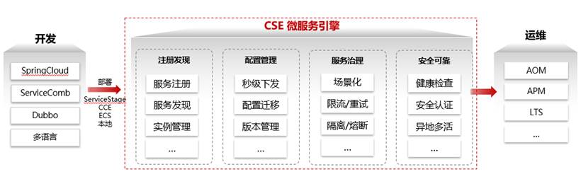 华为云微服务引擎CSE是用于微服务应用的云中间件,为用户提供注册发现、服务治理、配置管理等高性能和高韧性的企业级云服务能力。而且,CSE可无缝兼容SpringCloud、ServiceComb等开源生态。用户也可结合其他云服务,快速构建云原生微服务体系,实现微服务应用的快速开发和高可用运维。CSE具有SpringCloud应用零门槛上云;治理能力开箱即用;实现配置分发同步及版本管理三大特点。