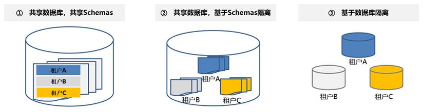 在SaaS架构中,注重的就是数据的 “独立性”,也是隔离性。如何在共有的一套系统架构与服务,仍可以保障客户的数据相对独立的正常使用。 一般地,以支持多租户的运行技术总体可分为三种:共享数据库,共享Schema;共享数据库,基于Schema隔离;数据库隔离。