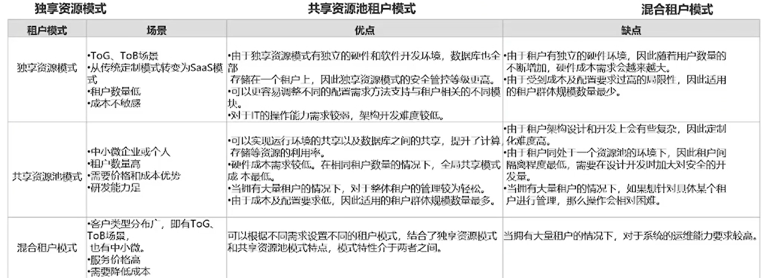 - 在 SaaS 的模型下,资源都是共享的。如果没有选择一个合适的技术方案就很难避免租户与租户之间的干扰问题。
