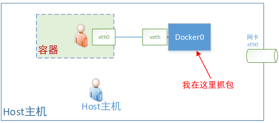 容器中不通,那咱们就抓包看看。于是我在如下位置(所有容器报文出去都要经过的地方),即docker0上面抓包: