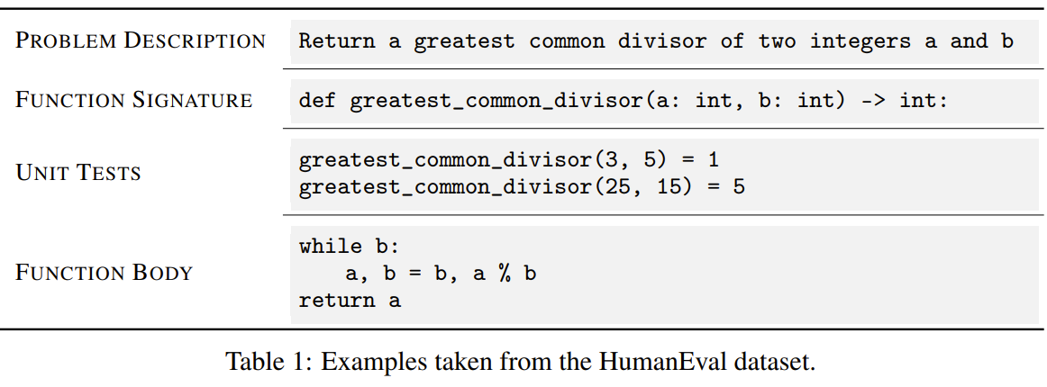 模型的一次生成通过率(PASS@1)是代码语言生成模型最重要的能力衡量指标。PanGu-Coder采用了OpenAI发布的HumanEval以及谷歌发布的MBPP两个函数级代码生成任务的数据集作为评测目标。表1给出了HumanEval中一个非常简单的例子。PanGu-Coder生成的代码需要通过单元测试(Unit Tests)才被认为生成正确。