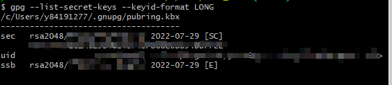 gpg --list-secret-keys --keyid-format LONG