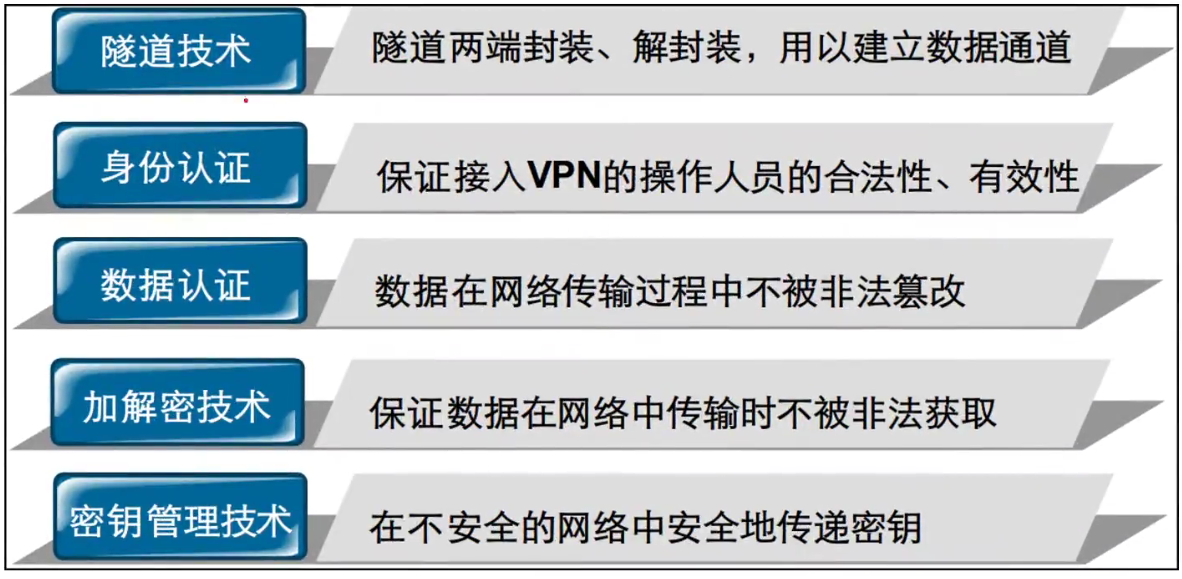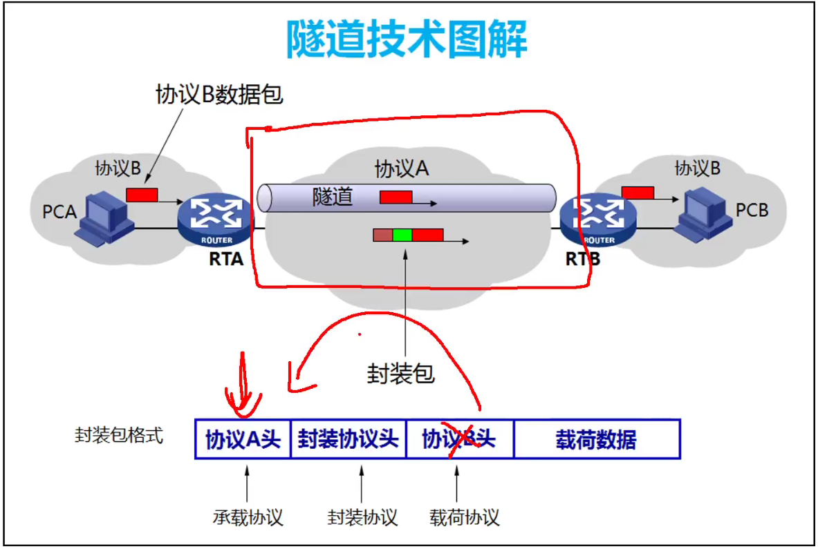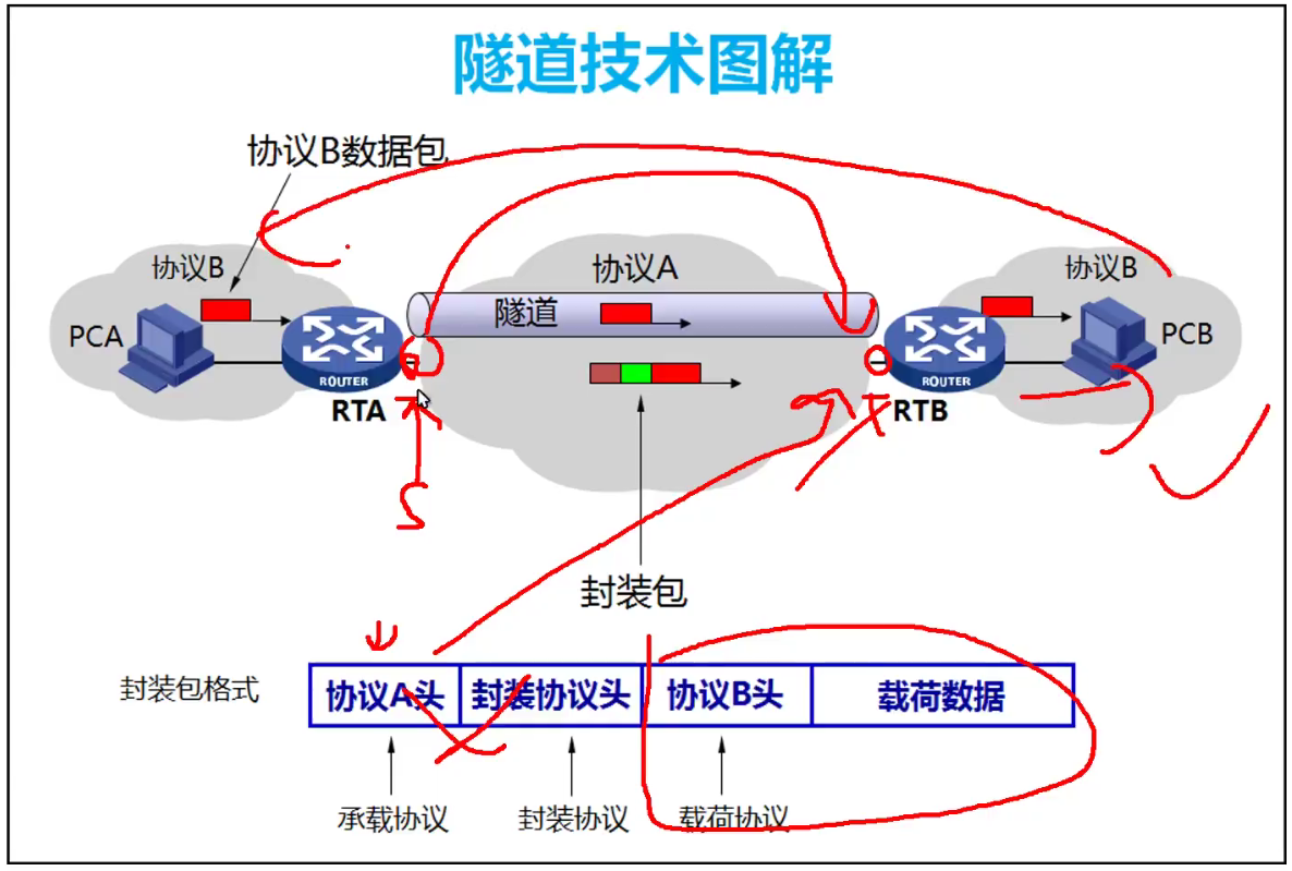 隧道两端封装,解封装,用于建立数据通道。 隧道:从一个点到另外一个点的一条路,别人看不见。 |