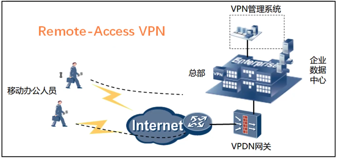 • 以上两种形式的VPN我们都可能会用到,包括像SSLVPN,也属于远程接入VPN。