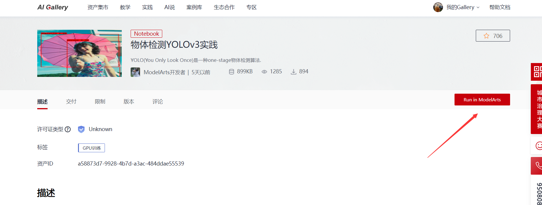 点击 Run in ModelArts,进入 JupyterLab 页面: