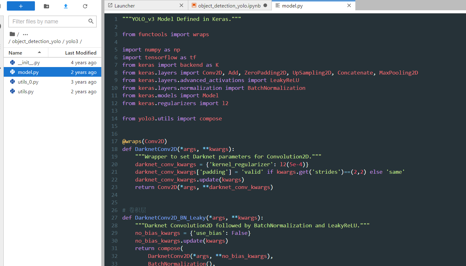 这里使用Keras深度学习框架搭建YOLOv3神经网络。