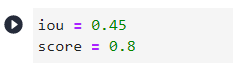 - IOU: 将交并比大于IOU的边界框作为冗余框去除