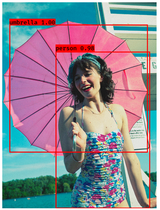 可以看出,基于ModelArts的物体检测YOLOv3可以检测出伞和人,框选的比较精确,与数据集训练的精度也有关系。