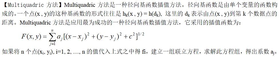 【薄板样条法】薄板样条法也属于径向基函数插值法,其实质从力学的观点看是使插值函数所代表的弹性薄板受限于插值点,并且具有最小的弯曲能量。