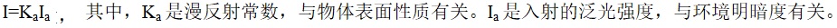 泛光在任何方向上的分布都相同。这里泛光用于模拟从环境中周围物体表面再反射出来的光。泛光项可以表示为:
