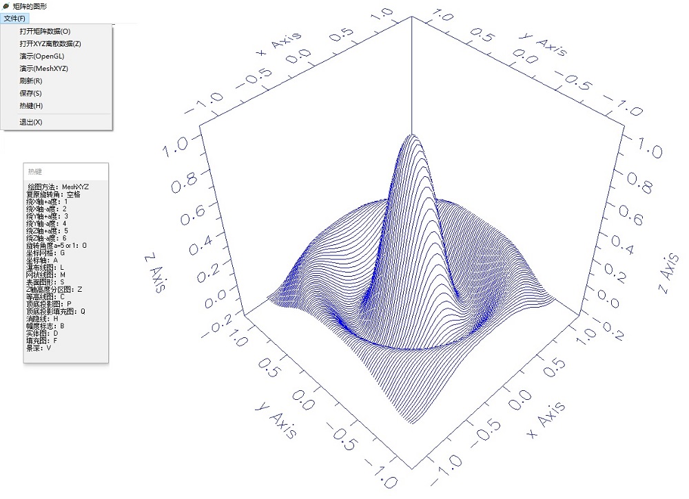 (5.4) 使用OpenGL绘制三维表面图形。菜单操作:《工具箱》→《外部工具》→《三维图形3》,执行cbsMatView.exe。