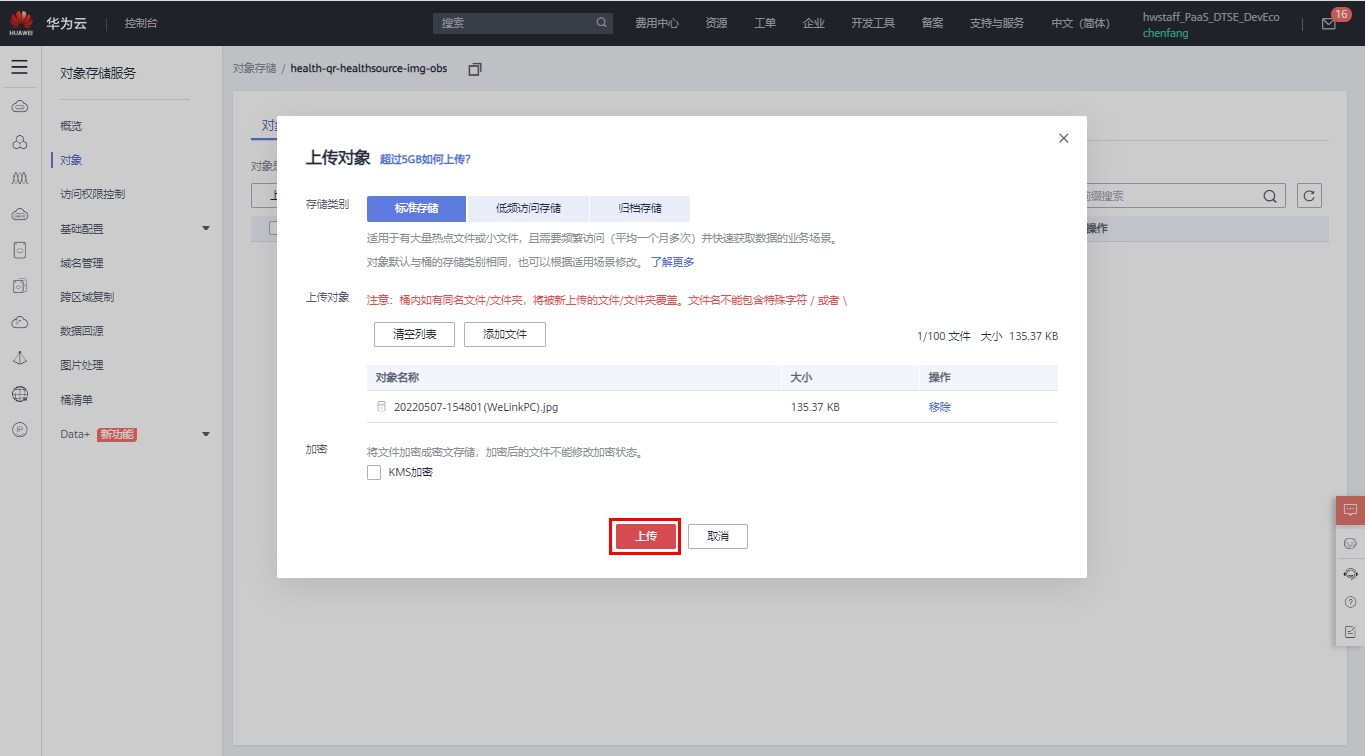 再来试一下,向OBS桶上传健康码截图是否可以触发函数执行。