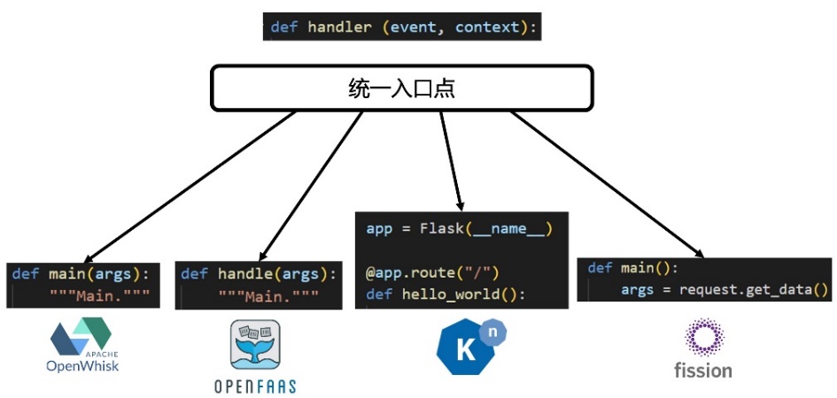 图3:ServerlessBench 2.0为多平台提供统一的函数调用入口(以Python为例)