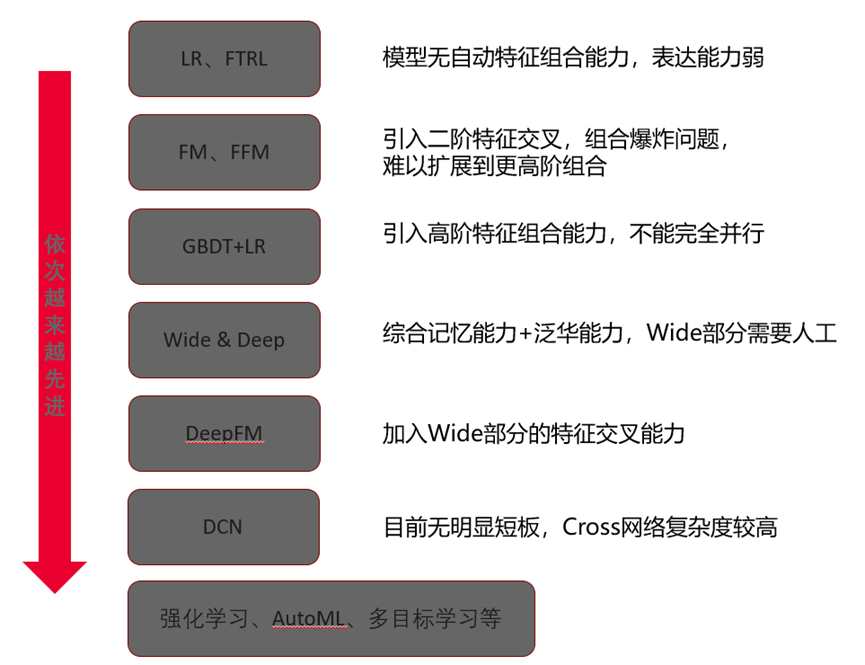 我们都学习了不少的精排算法,那么工业界的排序模型都是怎么演进的呢?下面通过一张图来描述一下排序模型的演进历程