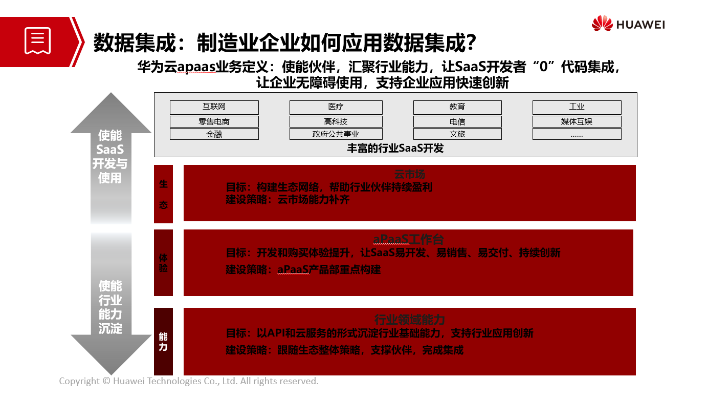 对于开天aPaaS,我们华为给自己的定位是“平台商”;向上我们希望同SaaS软件的行业伙伴一起沉淀不同行业的不同业务需求;向下联合全球的技术组织以及开发者用 API 方式加固加深开天的技术底座。