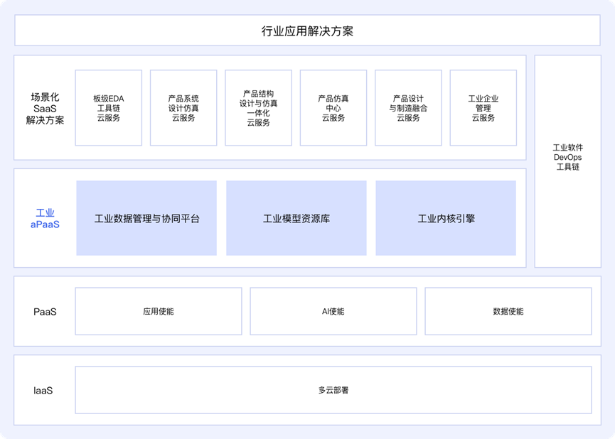 为加速工业软件SaaS化,降低工业企业数字化转型难度,华为云联合生态伙伴共同打造工业aPaaS,提供工业数据管理平台、工业资源库、工业内核引擎根服务,构建场景化工业工具链,共建工业云。