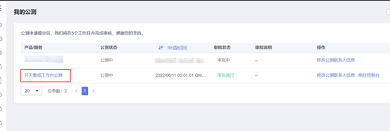 在如下链接中申请公测,申请成功后,可在审批状态中看到审批通过字样。https://account.huaweicloud.cn/usercenter/?region=cn-north1#/betaManagement