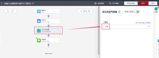 选择预报空气质量城市-上海;