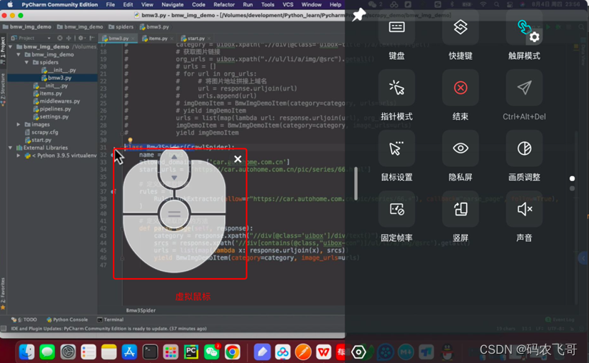 中间的部分是向日葵的虚拟鼠标,它可实现左键,右键以及鼠标上下滚动的效果,滚动效果没那么便捷,右侧是其他的功能菜单,向日葵支持屏幕录制以及截图功能:。