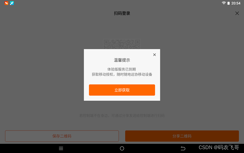 当我兴高采烈用向日葵的控制端扫描向日葵的客户端进行登录时,结果一个弹框提示我接下来进入了付费环节。