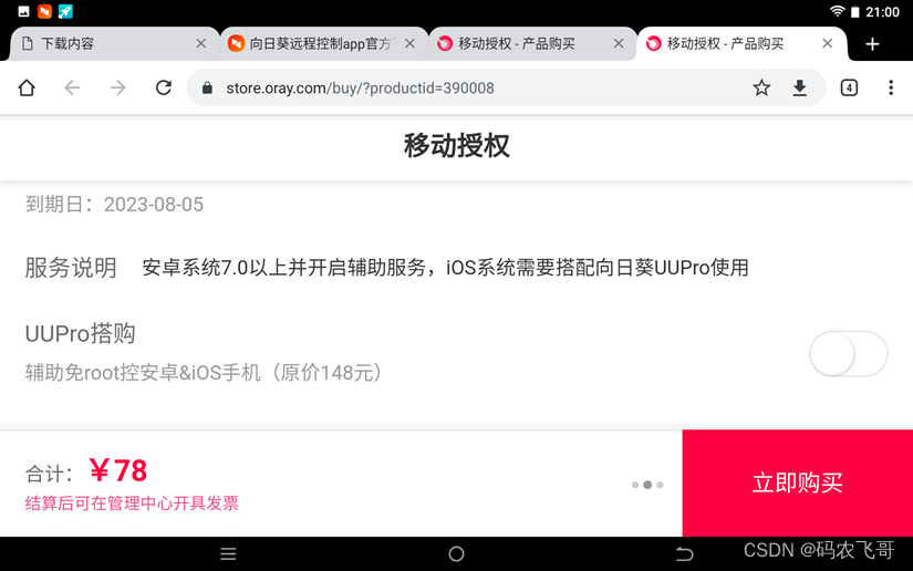 鉴于要付费,所以没能体验成功。但向日葵除了可以远控安卓系统外,还可以搭配向日葵UUPro这一硬件后,远控ios系统。