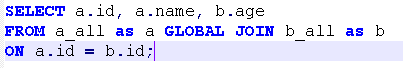 - GLOBAL JOIN 可以看做一个不完整的Broadcast JOIN实现。如果JOIN的右表数据量较大,就会占用大量网络带宽,导致查询性能降低;