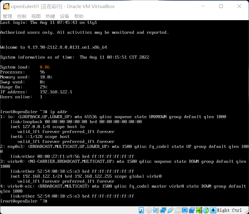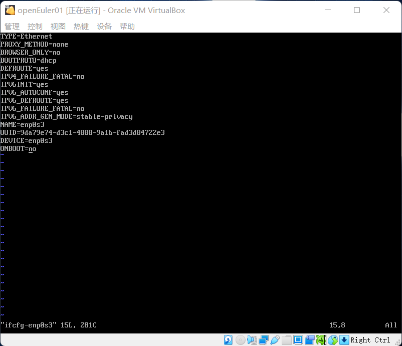【摘要】 使用VirtualBox安装openEuler中遇到的网卡问题解决方案