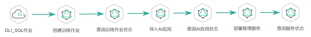 数据治理中心DataArts Studio(原DGC)用于编排任务,串联大数据与AI作业。如下图所示为一个简单的串联作业案例: