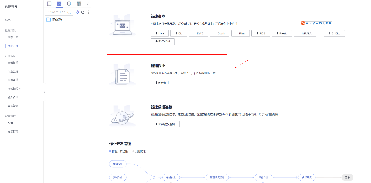 开始界面如下,点击“数据开发”进入作业编排界面。