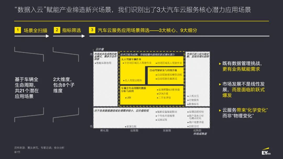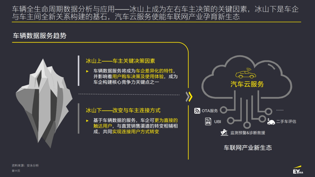 车辆全生命周期的数据分析与应用:云可以构建业务新生态,持续孕育新的智能化应用场景,为车主带来新的体验,创造新的价值。