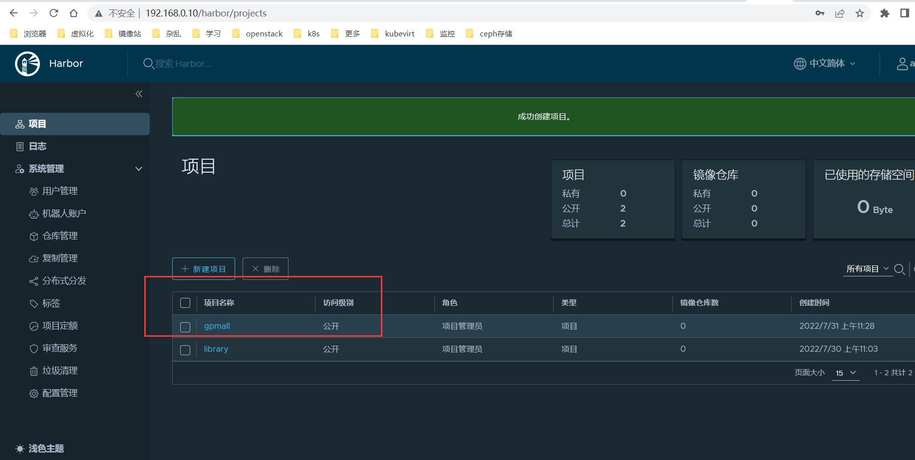 2. 新增私有容器registry仓库,用于集群拉取镜像