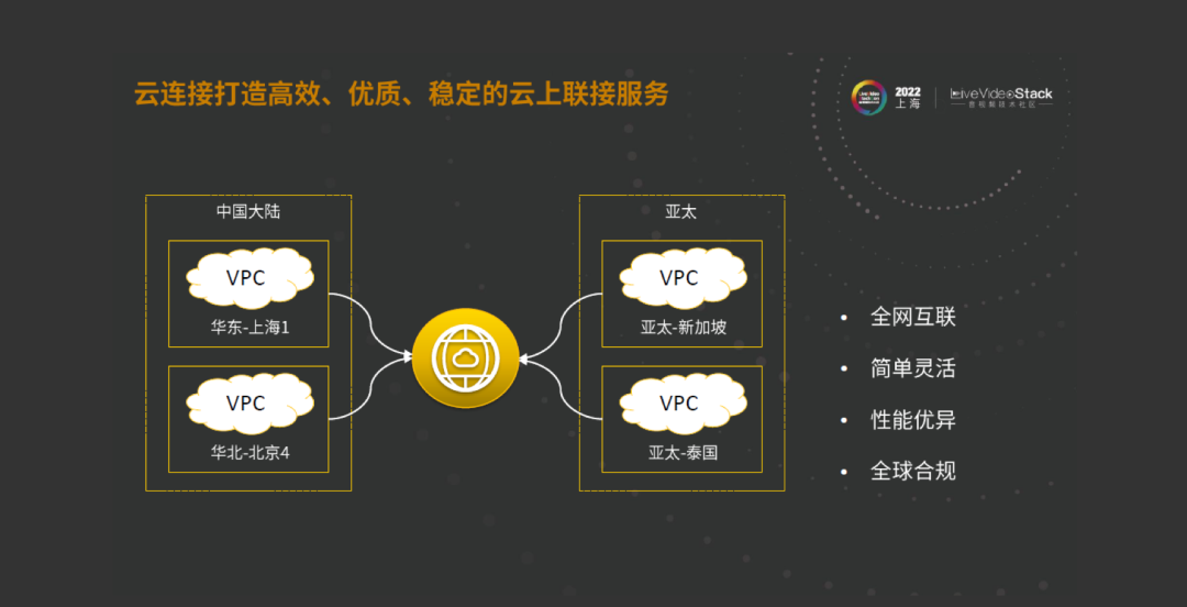 目前,通过一个套餐包,就可以实现全球的VPC之间非常简单灵活、全球互联的场景,这样就可以快速帮助用户拥有一个更优质的骨干网络。