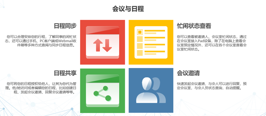 此外还有会议与日程协同、全终端邮件收发等等功能,可以有效助推工作效率提升,实现轻松移动办公。