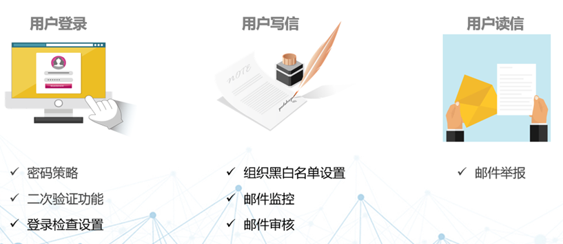 除此之外,根据不同的办公场景,云享邮箱也有不同的安全管理措施及功能。