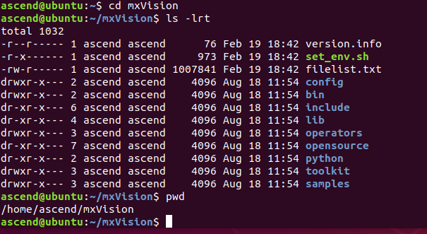 查看目录,发现mindx安装到了 /home/ascend/mxVision目录下了
