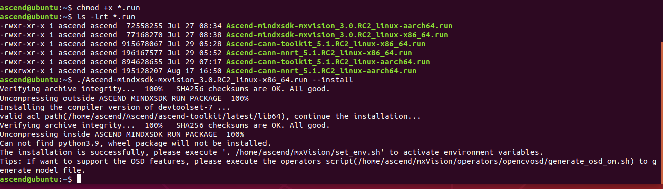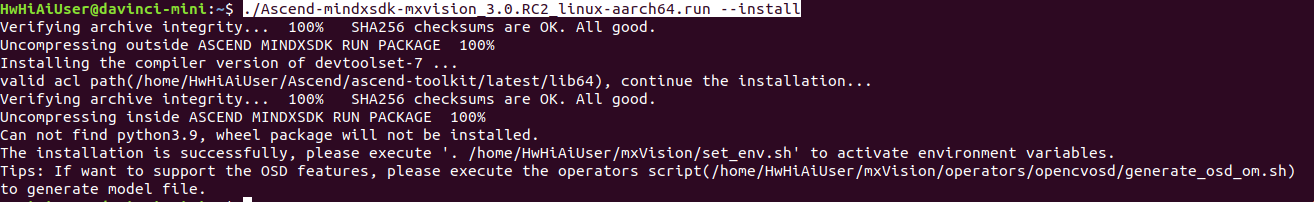 ./Ascend-mindxsdk-mxvision_3.0.RC2_linux-x86_64.run --install