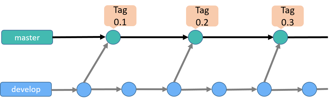 每个代码仓库有且只有一个master分支,master分支是用于发布到生产环境的分支,代码时刻处于生产就绪状态。为保证产品版本稳定,必须进行严格的管理控制,比如不允许在master分支上直接修改代码,只允许从其他分支合入;在发布准备期,只接受修复bug,不接受新功能代码合入等等。