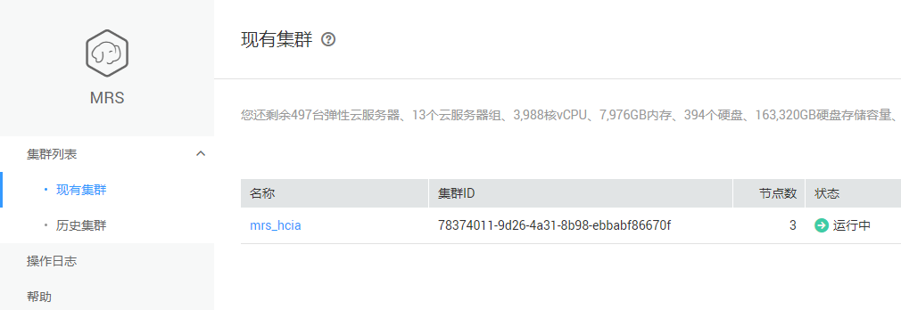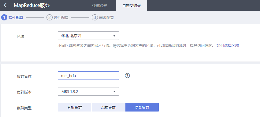 【集群名称】:自定义名称,本实验手册以“mrs-hcia”为例