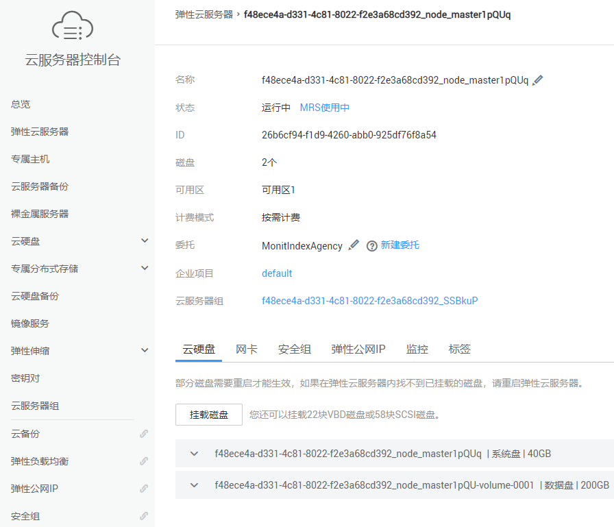 点击节点名称,进入弹性云服务器的控制台,如下图