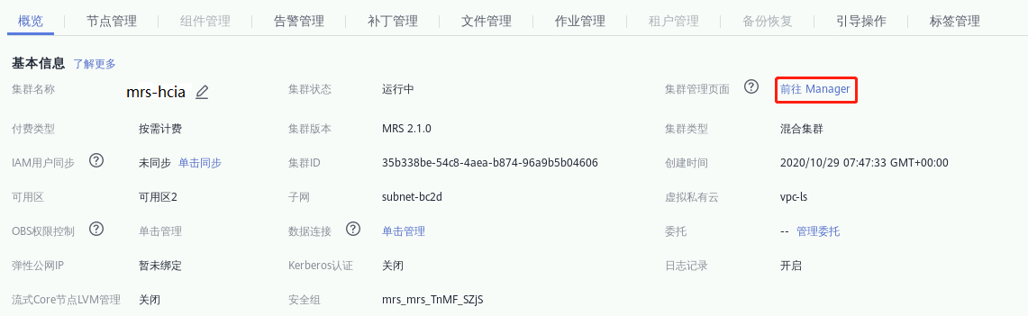 点击“登录”,即可进入MRS Manager页面