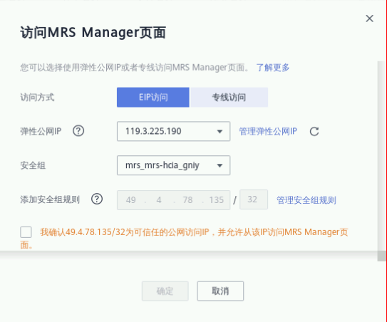 MRS提供了基于弹性公网IP来便捷访问组件WebUI的安全通道,并且比用户自己绑定弹性公网IP更便捷,只需界面鼠标操作,即可简化原先用户需要自己登录虚拟私有云添加安全组规则,获取公网IP等步骤,减少了用户操作步骤;