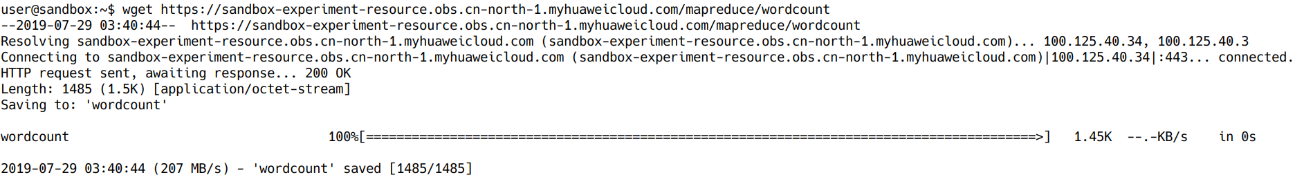 wget https://sandbox-experiment-resource.obs.cn-north-1.myhuaweicloud.com/mapreduce/wordcount