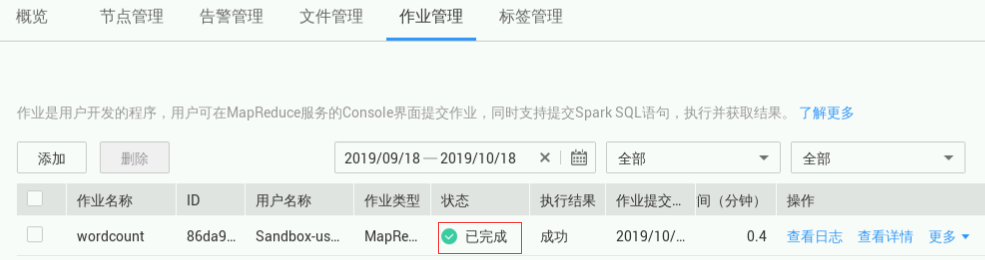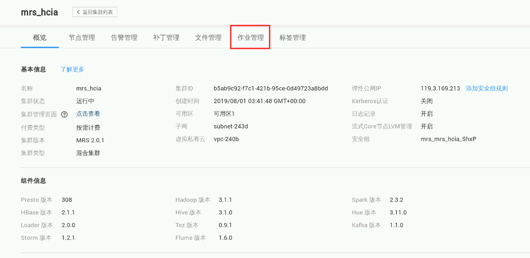 切回浏览器的集群管理页面,选择“作业管理”,如下图