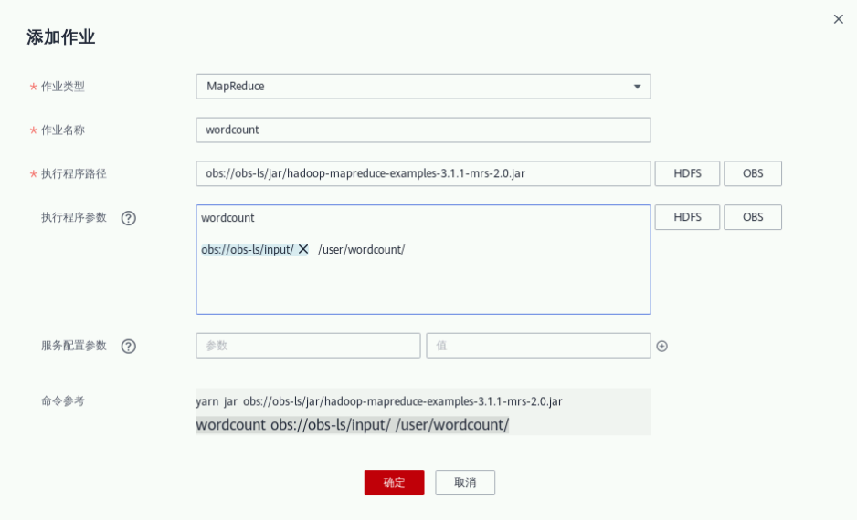 ③ 执行程序路径:点击"OBS",选择“obs-xxxx”->“jar”->“hadoop-xxx”文件夹并确定;