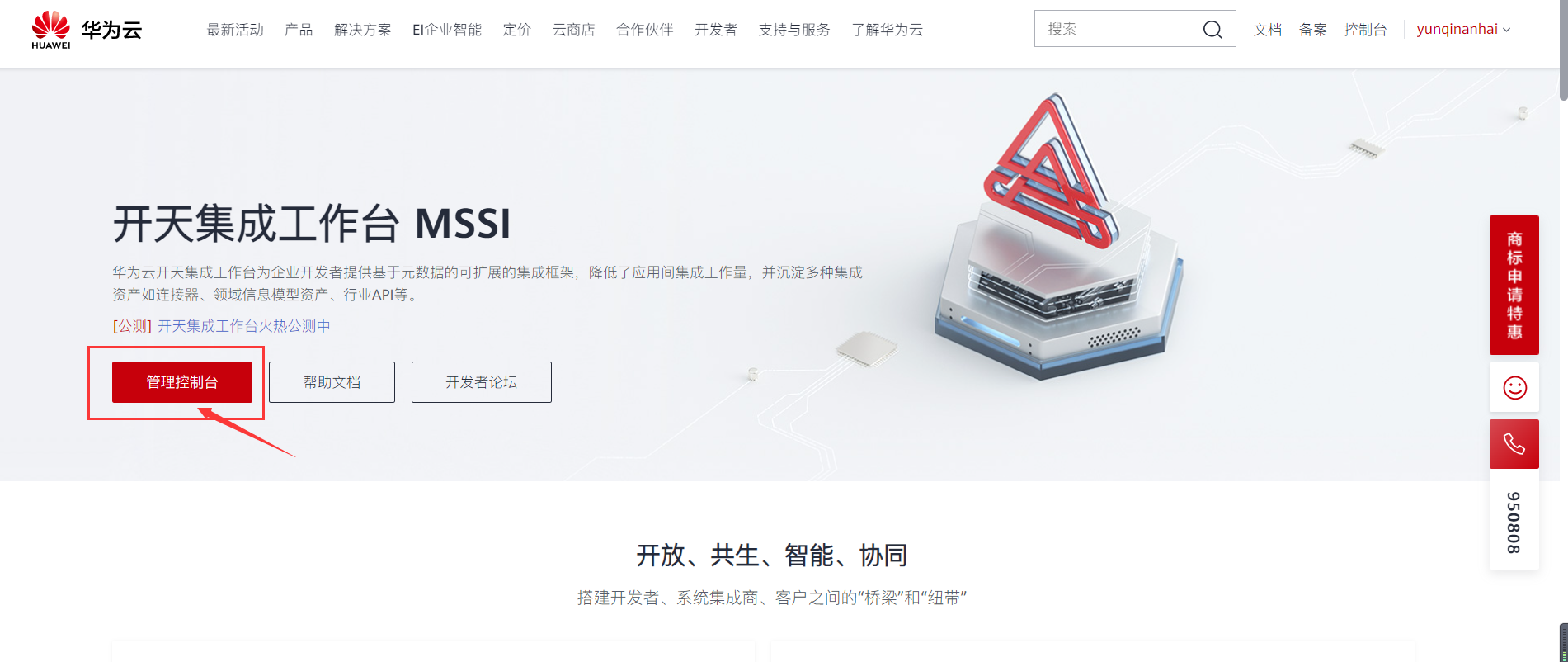 开通开天集成工作台 https://www.huaweicloud.cn/product/mssi.html